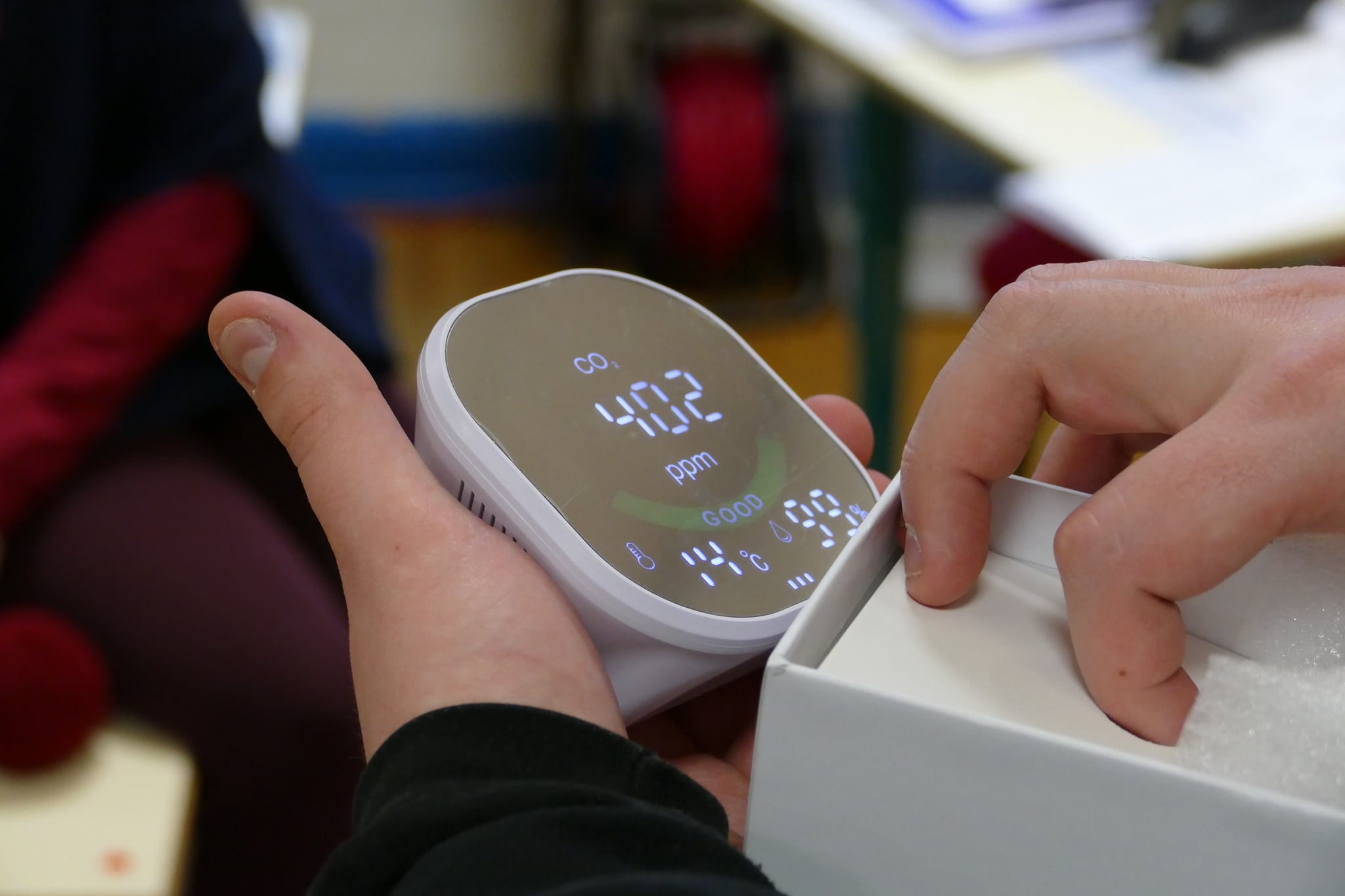 Comme l'explique la ville dans un communiqué, le petit boîtier indiquera aux enseignants la qualité de l’air de leur classe. Dès que l’air ambiant se charge en dioxyde de carbone, les indicateurs visuels changent de couleur : vert, orange ou rouge. Lorsque le voyant orange s’allume, il est temps d’aérer.