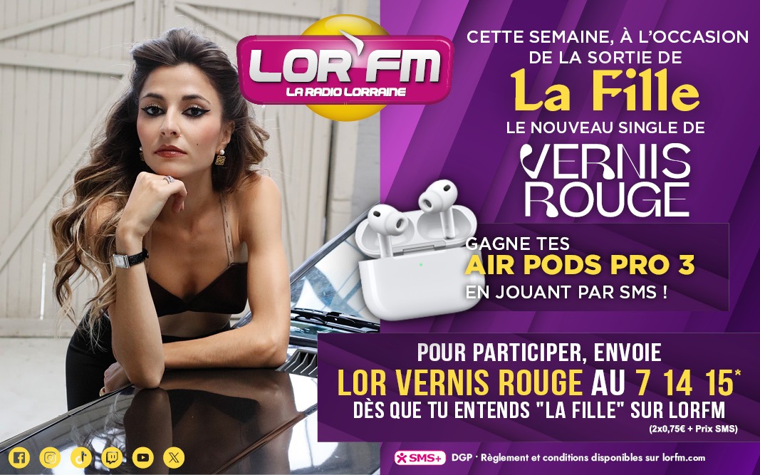 A L'OCCASION DE LA SORTIE DE "LA FILLE", LE NOUVEAU SINGLE DE VERNIS ROUGE, GAGNE TES AIRPODS PRO 3 EN JOUANT PAR SMS !